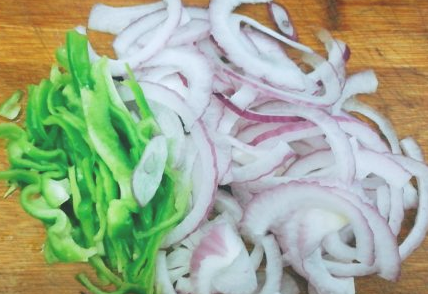 洋葱、青椒切丝备用。