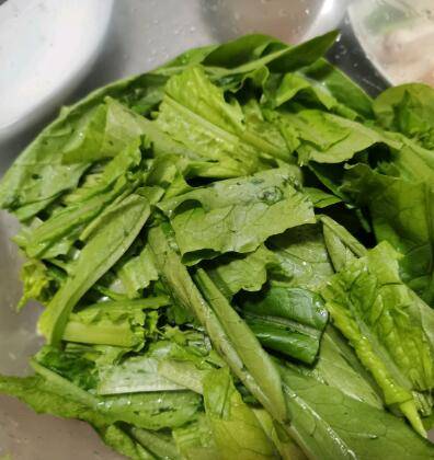 1、油麦菜洗净切段,蒜瓣切片。