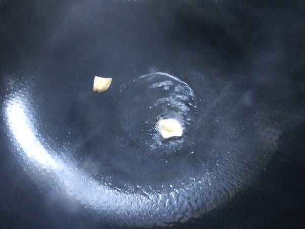 2、热锅倒油,油热后,加入生姜,爆香。