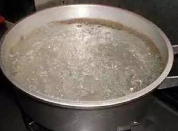4、将鲜奶倒入锅中,加少许盐,多次扬沸,可以适当降低温度,防止牛奶因长期处于过高温度而生成不利健康的糖基化终产物。
