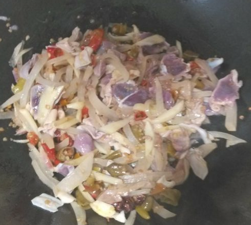 三分钟之后放入鸡杂,再过五分钟再参入水刚淹没鸡杂即可。待水开后一两分钟即可出锅。