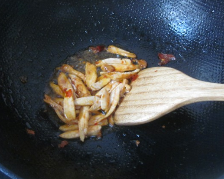 加半勺花椒面、盐炒匀,烹入少许醋;