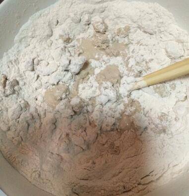 2、300克生粉加280克左右的水细细拌匀。
