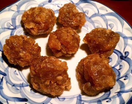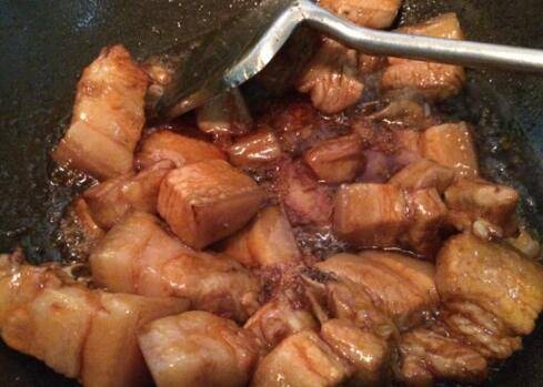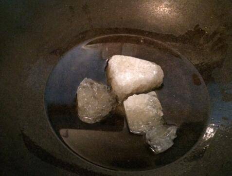 9、冰糖颜色呈焦褐色,且泛小泡泡时,表明已经熬好。