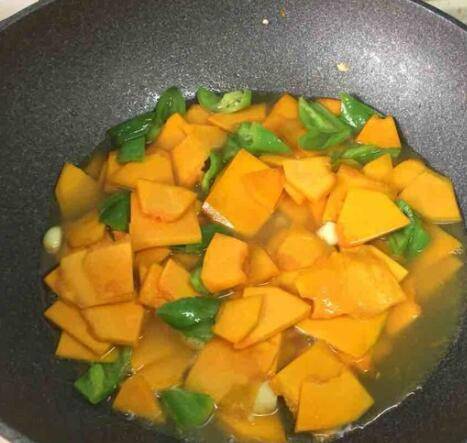 用料:南瓜一小段、辣椒一根、蒜适量、盐适量、鸡精适量、蚝油适量。