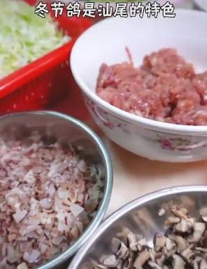 4、用饺子皮把炒熟的配料对折包成半月型锁好边。锅里烧水,水开后把包好的冬节鸽下锅蒸10分钟即可食用。
