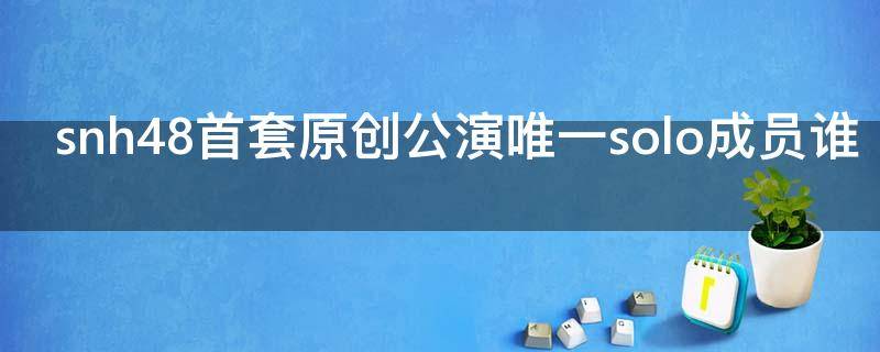 snh48首套原创公演唯一solo成员是徐晨辰。徐晨辰,1990年6月20日出生于江苏省南京市,中国内地女歌手、演员,SNH48声乐老师,隶属于上海丝芭文化传媒集团有限公司。2012年10月14日,参加SNH48一期生选拔,成为第一批合格者之一。2013年1月12日,参加Give Me Power!SNH48一期生发布演出,正式出道;4月17日,升格为SNH48正式成员。