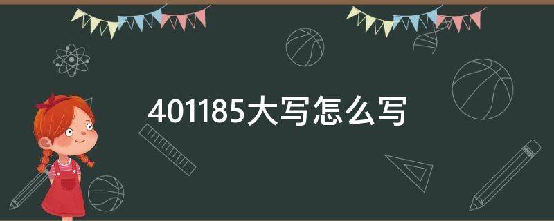 401185大写写成肆拾万壹仟壹佰捌拾伍。大写的中文数字有壹、贰、叁、肆、伍、陆、柒、捌、玖、拾。中文大写金额数字到元为止的,在元之后应写整(或正)字;在角之后,可以不写整(或正)字;大写金额数字有分的,分后面不写整(或正)字。阿拉伯数字由于笔画简单,容易被涂改伪篡,所以一般文书和商业财务票据上的数字都要采用汉字数码大写。