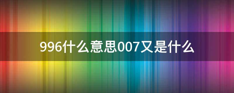 最佳答案996是指早上9点上班,晚上9点下班,中午傍晚休息不足1小时的工作制度。007指0点到0点24小时,一周7天上班。007又是风靡全球的一个谍战系列电影,它不仅是影片的名称,更是主人公邦德特工的代号。在故事里,邦德是英国情报机构军情六处的间谍,代号007,被授予可以除去任何妨碍行动的人的权力。他冷酷...