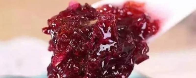 7、把揉好的花酱放在干净的玻璃瓶里,不要放太满,在最上面浇上一层蜂蜜,蜂蜜可以有防腐的作用,然后用保鲜膜封住瓶口,可以多该几层,然后盖上瓶盖。蜂蜜不需要太多,不喜欢吃蜂蜜可以不放,这样可以保留玫瑰花原有的香味。
