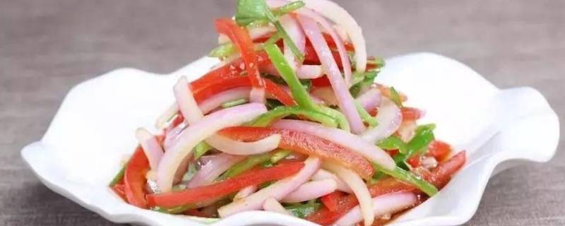 6、将洋葱,辣椒和西红柿丝放入大碗中,调入醋,盐,糖,味精和香油,搅拌均匀即可食用。