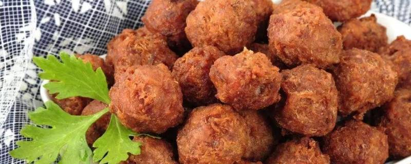 7、锅里倒入差不多可以浸没一层丸子高度的油量,烤至8成热时倒入丸子。炸至金黄色即可。