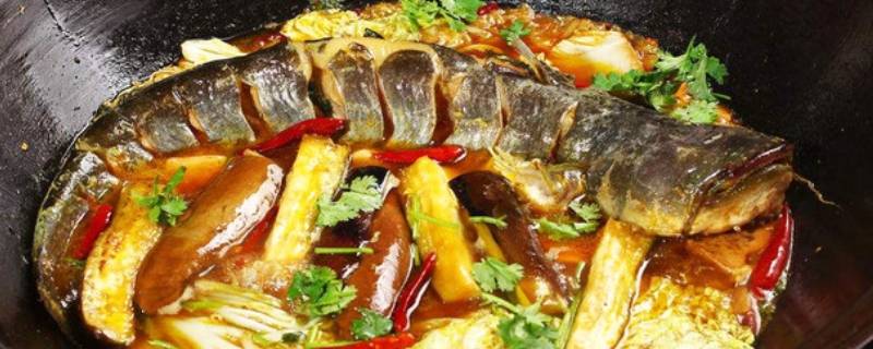 2、铁锅炖鱼:柴锅里放入色拉油,四成热时下八角、茴香、大葱、姜炒出香,放入草鱼小火煎1分钟后烹醋、酱油,加入高汤,加入盐、味精、白糖调味后备用,同时将玉米面加水,揉匀后做成小饼,然后将其贴在锅四周,上盖,小火烧一小时后起锅,先把贴饼子铲下来入盘,再把鱼放入盘内,把锅里的汁倒入鱼身即可。