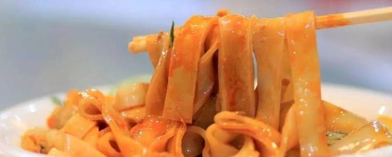 3、古浪酿皮子:酿皮子是面粉制的食品,色泽晶莹黄亮,半透明如玉,切成筷子粗细的长条状,再加上酱油、香醋、蒜汁、辣椒油、精盐等调料即可食用。酿皮子价廉物美,其味酸辣凉爽,柔韧可口,是一种大众化的地方风味食品。
