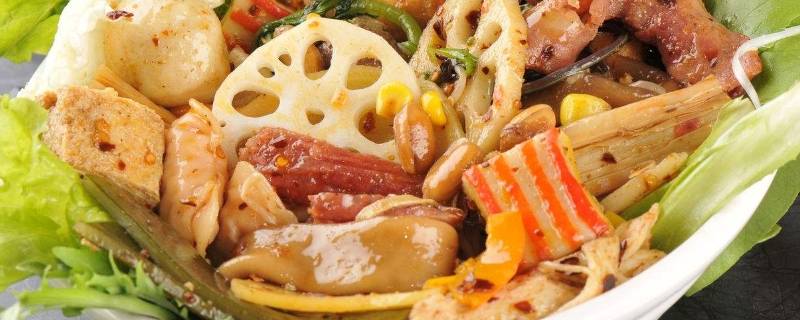 3、麻辣拌:抚顺麻辣拌是辽宁省抚顺市特产,主要有土豆、海带结、豆皮、丸子、鱼丸、甘蓝、宽粉、茼蒿、白菜、闷子、豆泡、蟹棒、蘑菇等原料组成,跟麻辣烫原料相似,不过是在煮过后沥干水分,加盐、陈醋、糖、花生碎、辣椒、孜然、麻油等拌匀后食用,是抚顺人在引入的麻辣烫基础上发明的,非常受欢迎,有甜酸口味,麻辣口味等等。