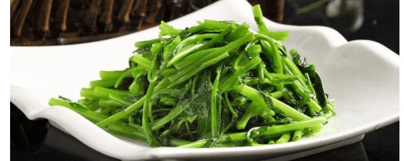 4、倒入空心菜茎,翻炒后,再倒入空心菜叶,翻炒。