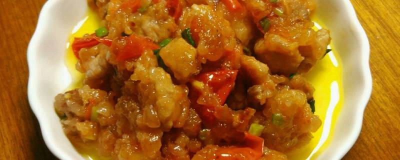 三、菠萝咕咾肉:里脊肉250克、鸡蛋1个、玉米淀粉50克、盐一勺、鸡精半勺、料酒1勺、生姜粉1勺、番茄沙司2勺、冰糖一小块。