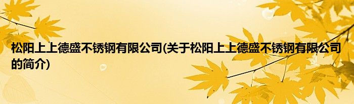 本文关于松阳上上德盛不锈钢有限公司的简介就讲解完毕,希望对大家有所帮助。
