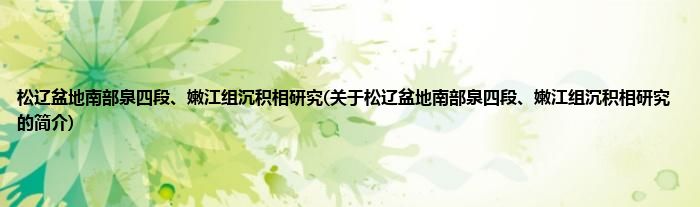 大家好,松辽盆地南部泉四段、嫩江组沉积相研究,关于松辽盆地南部泉四段、嫩江组沉积相研究的简介很多人还不知道,现在让我们一起来看看吧!