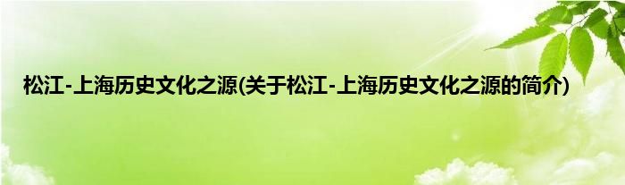 本文关于松江-上海历史文化之源的简介就讲解完毕,希望对大家有所帮助。