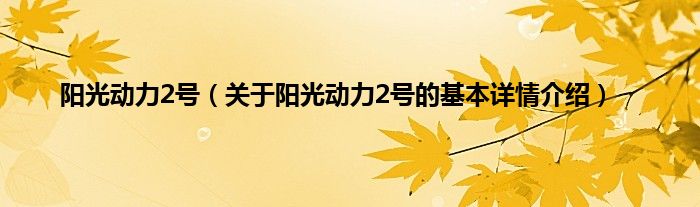 大家好我是小蝌蚪,阳光动力2号,关于阳光动力2号的基本详情介绍很多人还不知道,那么现在让我们一起来看看吧!