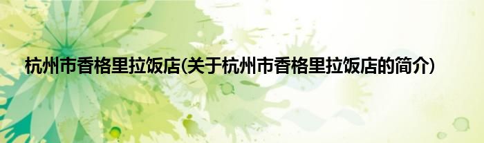 本文关于杭州市香格里拉饭店的简介就讲解完毕,希望对大家有所帮助。