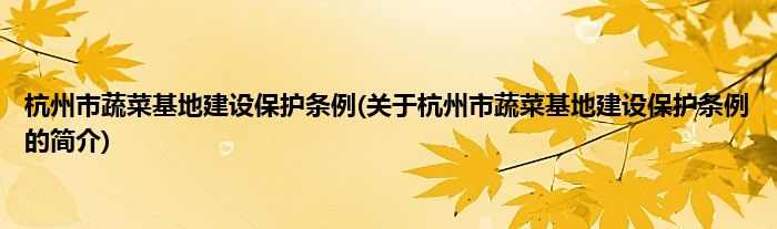 本文关于杭州市蔬菜基地建设保护条例的简介就讲解完毕,希望对大家有所帮助。