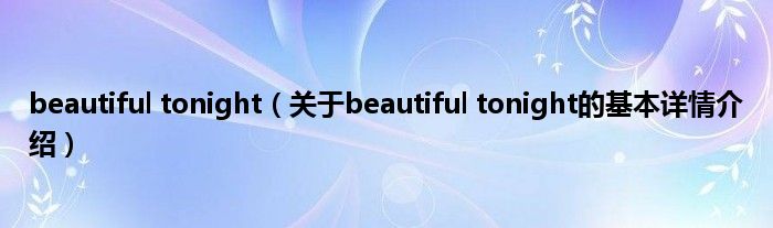 本文关于beautiful tonight的基本详情介绍就讲解完毕,希望对大家有所帮助。