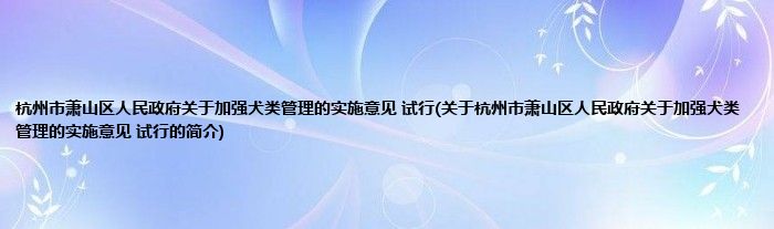 本文关于杭州市萧山区人民政府关于加强犬类管理的实施意见 试行的简介就讲解完毕,希望对大家有所帮助。