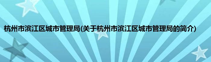 本文关于杭州市滨江区城市管理局的简介就讲解完毕,希望对大家有所帮助。