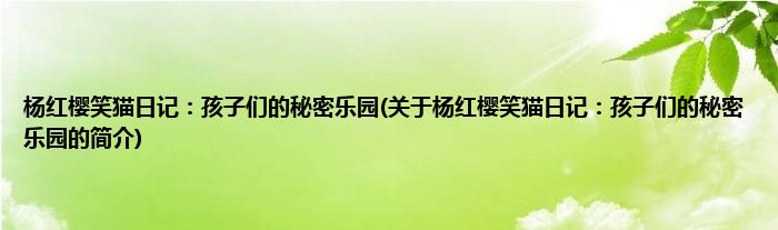 大家好,杨红樱笑猫日记:孩子们的秘密乐园,关于杨红樱笑猫日记:孩子们的秘密乐园的简介很多人还不知道,现在让我们一起来看看吧!