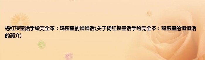 本文关于杨红樱童话手绘完全本:鸡蛋里的悄悄话的简介就讲解完毕,希望对大家有所帮助。