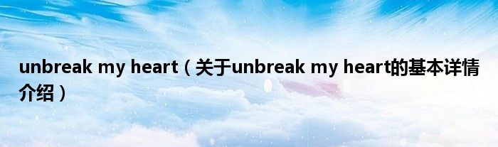 本文关于unbreak my heart的基本详情介绍就讲解完毕,希望对大家有所帮助。
