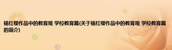 本文关于杨红樱作品中的教育观 学校教育篇的简介就讲解完毕,希望对大家有所帮助。