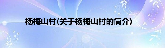 大家好,杨梅山村,关于杨梅山村的简介很多人还不知道,现在让我们一起来看看吧!