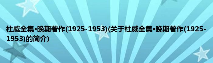本文关于杜威全集·晚期著作(1925-1953)的简介就讲解完毕,希望对大家有所帮助。