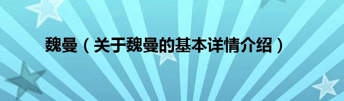 本文关于魏曼的基本详情介绍就讲解完毕,希望对大家有所帮助。