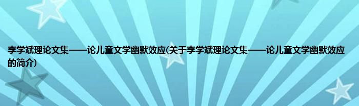 本文关于李学斌理论文集——论儿童文学幽默效应的简介就讲解完毕,希望对大家有所帮助。