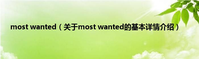 本文关于most wanted的基本详情介绍就讲解完毕,希望对大家有所帮助。