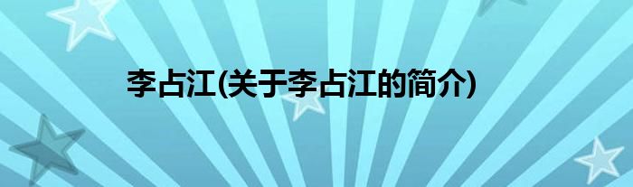 大家好,李占江,关于李占江的简介很多人还不知道,现在让我们一起来看看吧!