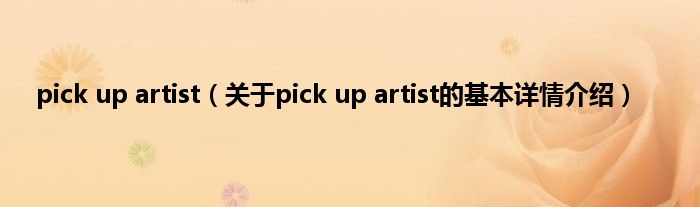 本文关于pick up artist的基本详情介绍就讲解完毕,希望对大家有所帮助。