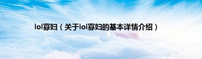 本文关于lol寡妇的基本详情介绍就讲解完毕,希望对大家有所帮助。