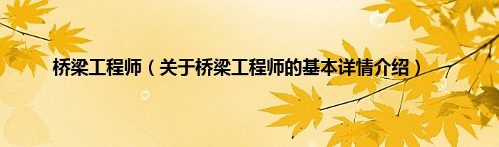 本文关于桥梁工程师的基本详情介绍就讲解完毕,希望对大家有所帮助。