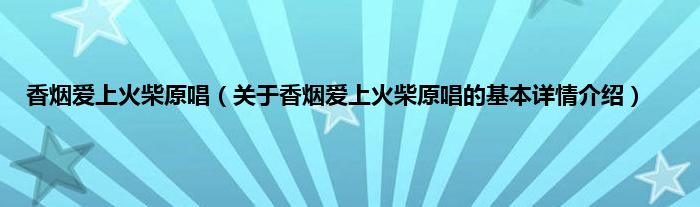 本文关于香烟爱上火柴原唱的基本详情介绍就讲解完毕,希望对大家有所帮助。
