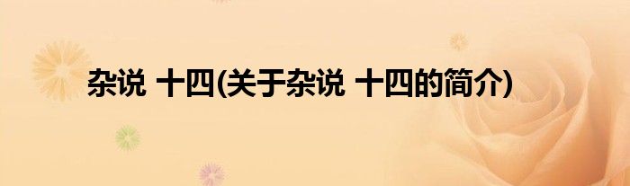 大家好,杂说 十四,关于杂说 十四的简介很多人还不知道,现在让我们一起来看看吧!