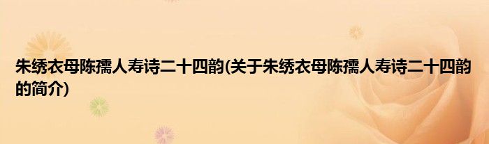本文关于朱绣衣母陈孺人寿诗二十四韵的简介就讲解完毕,希望对大家有所帮助。