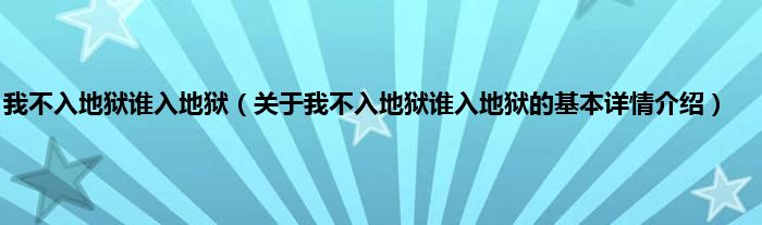 本文关于我不入地狱谁入地狱的基本详情介绍就讲解完毕,希望对大家有所帮助。