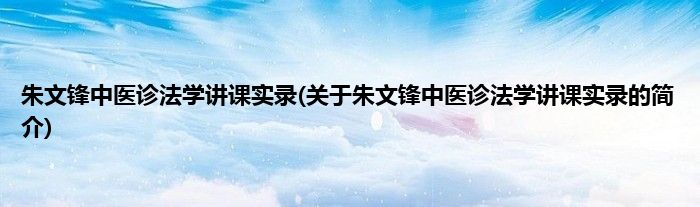 本文关于朱文锋中医诊法学讲课实录的简介就讲解完毕,希望对大家有所帮助。