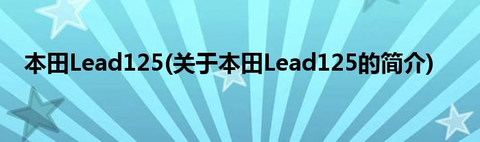 本文关于本田Lead125的简介就讲解完毕,希望对大家有所帮助。