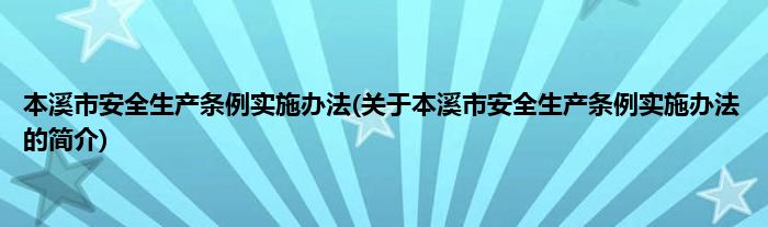 大家好,本溪市安全生产条例实施办法,关于本溪市安全生产条例实施办法的简介很多人还不知道,现在让我们一起来看看吧!